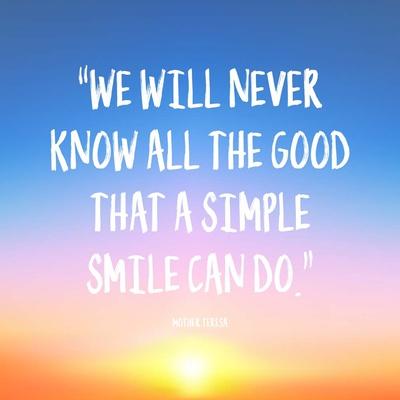 Mother teresa quote about smiling. Mother Teresa of Calcutta. We can never know how much. You are Gods Good News.