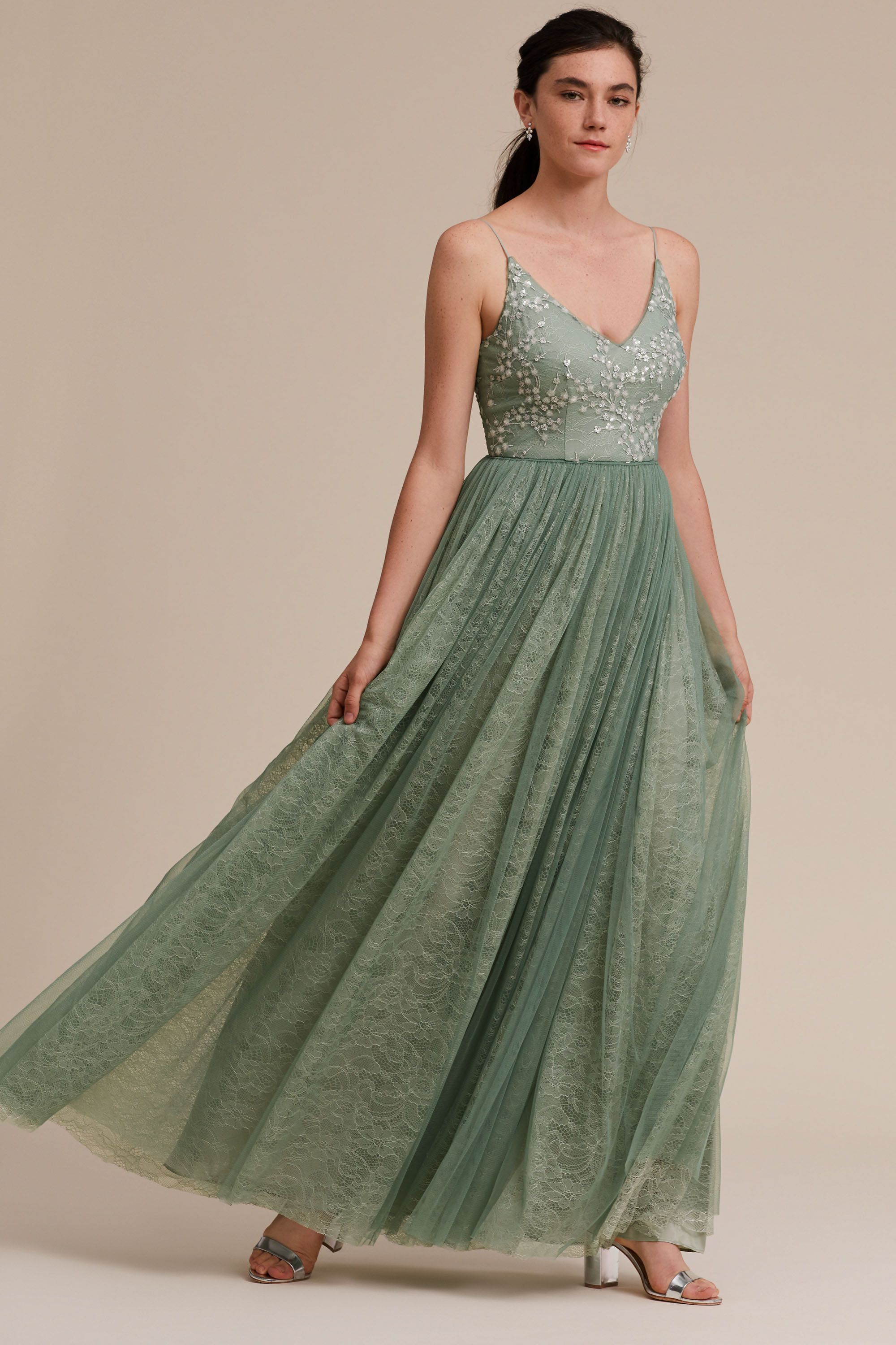 A sequined cherry blossom print covers the thin-strapped bodice. BHLDN x Adrianna Papell Cluny Dress Youll be in the bell of the ball in this Adrianna Papell Spaghetti Strap Long DressFormal gown in a classic silhouette. Sep 15 2018 - Anthropologie Cluny Wedding Guest Dress.