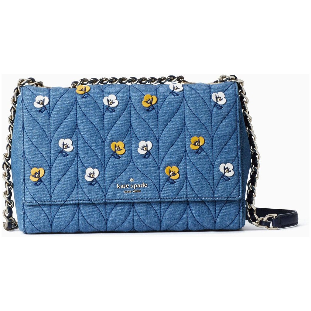 I was looking for a smaller sized bag because I usually carry larger handbags and was tired of all the stuff that seems to end up stockpiles in them and weighing a ton. This Kate Spade quilted denim handbag is perfect for what I wanted it for. Plus free ground shipping on all orders to the US.