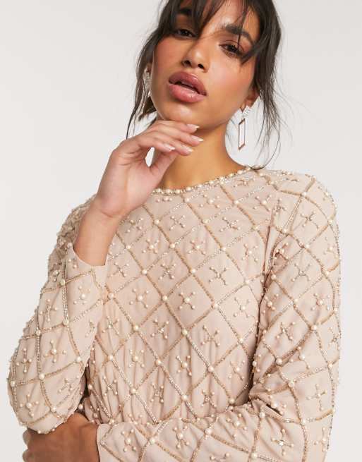 BROOKE LONG SLEEVE BANDAGE DRESS IN PEARL WHITE. 42 out of 5 stars 187. Pearl Knitted Long Sleeve Bodycon Dress.